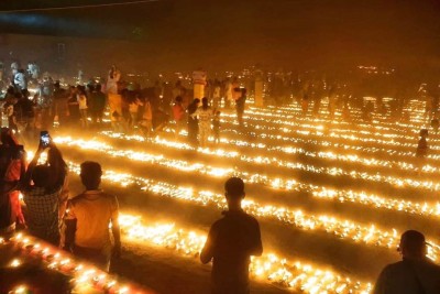 Devotees light lamps and offer prayers at Brahma Sarovar, making it a spiritually significant event.