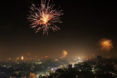 Hindu communities celebrate with the lighting of oil lamps, bursting of crackers, and prayers.