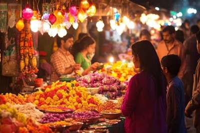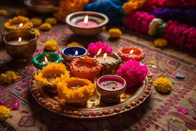The festival begins with Dhanteras, celebrated by buying gold, followed by Lakshmi Puja and the lighting of diyas.