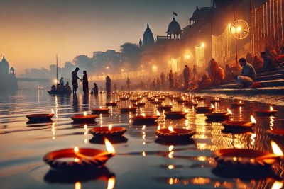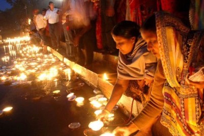 Observed with evening prayers and diya lighting at Yamuna ghats.