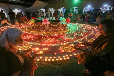 Kashmiri Pandits celebrate with Lakshmi Puja and lighting of lamps.