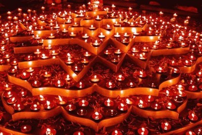 Homes are lit with lamps, and temples host grand Lakshmi Puja.