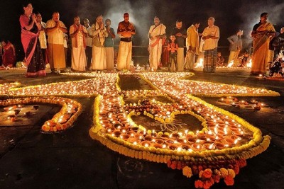 Celebrated with Lakshmi Puja at homes and temples, and illuminated ghats along rivers.