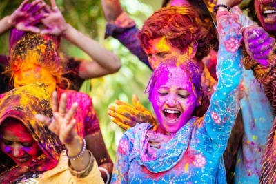 Temples like Dwarkadhish and Somnath organize special pujas, while vibrant Holi processions are held across the state.