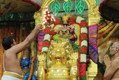 Devotees gather at Yadagirigutta Temple for special prayers and rituals.