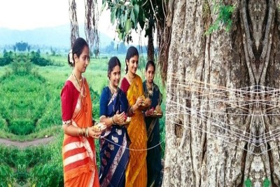 Married women fast and worship the Banyan tree, praying for the longevity of their husbands, inspired by the legend of Savitri and Satyavan.