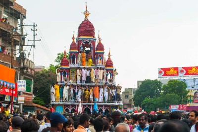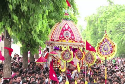 A grand chariot procession celebrates Lord Jagannath in Vrindavan, attracting devotees from across the state.