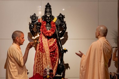 Devotees honor their spiritual teachers and sages with offerings and prayers at temples like Tirupati Balaji and Kanaka Durga Temple.